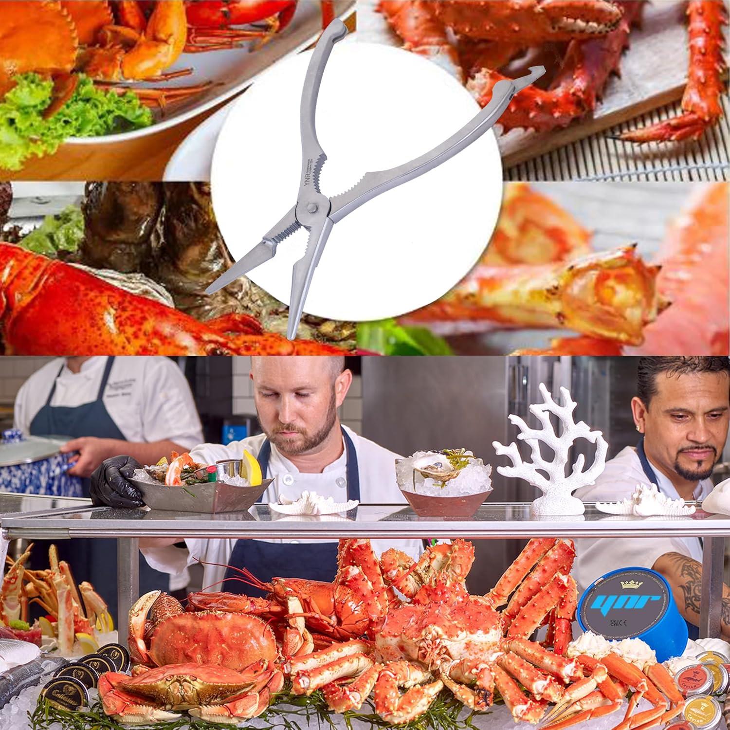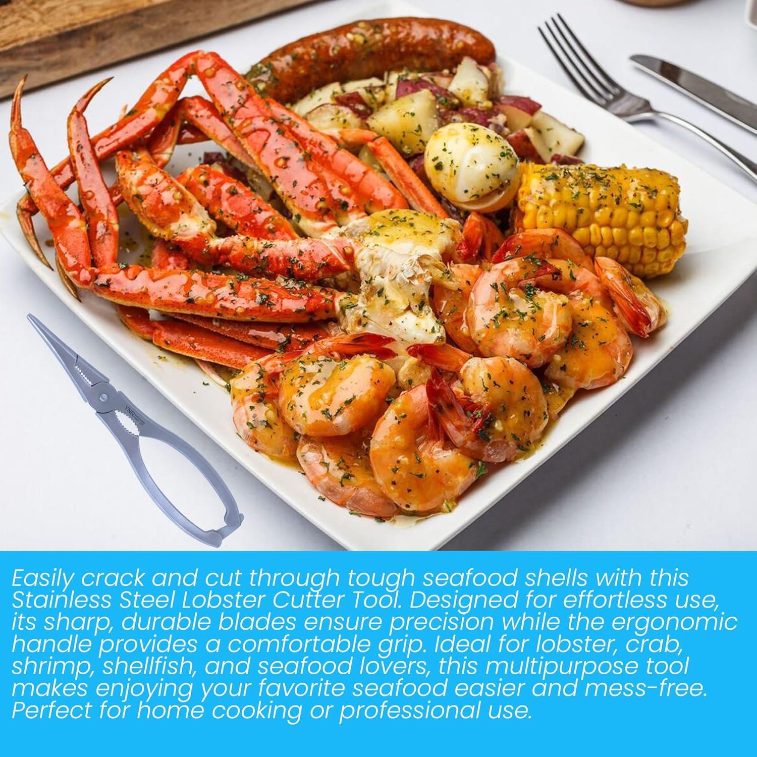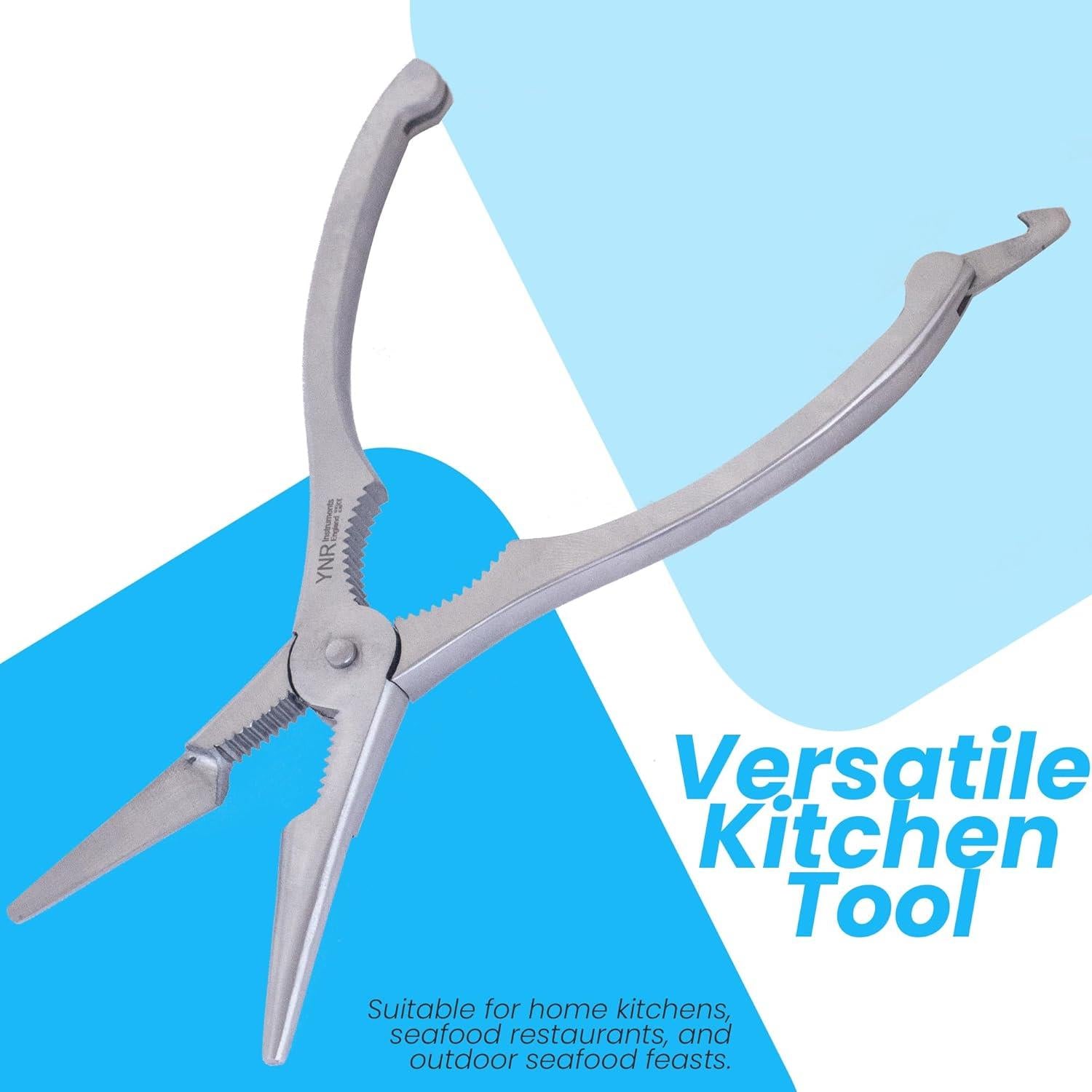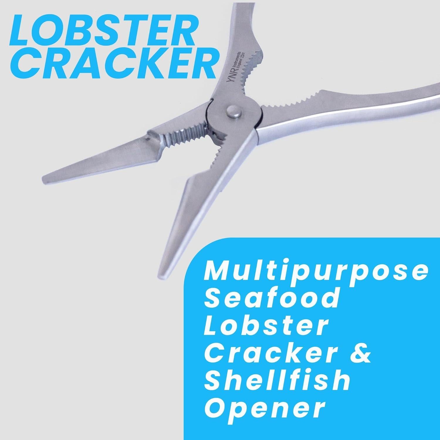 Transform your seafood dining experience with this versatile 18.5 cm stainless steel lobster cracker and shellfish opener. Featuring serrated edges and a robust pivot mechanism, this multipurpose tool effortlessly cracks through tough shells of lobster, crab, and other shellfish. The ergonomic handles, measuring 4 cm wide, provide comfortable grip and optimal leverage for precise control. Perfect for both home kitchens and seafood restaurants, this durable tool helps you access delicate meat without crushing or damaging it. Its professional-grade design makes it ideal for everything from intimate dinner parties to large seafood feasts. The tool's compact size allows for easy storage while maintaining the strength needed for challenging shells. Whether you're tackling king crab legs or smaller shellfish, this essential kitchen implement ensures a mess-free and enjoyable dining experience. Suitable for both casual home cooks and culinary professionals, it's an indispensable addition to any seafood lover's kitchen arsenal.